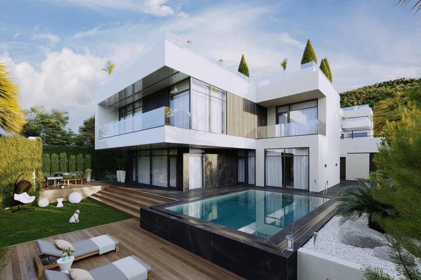 КП Видная Долина, идеально подойдет для тех, кто мечтает о спокойной загородной жизни в гармонии с окружающей природой. Двухэтажный коттедж органично вписан в естественный природный ландшафт